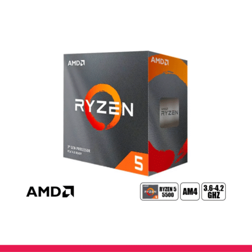 El AMD Ryzen 5 5500 es un procesador de escritorio de gran rendimiento y excelente relación calidad‑precio. Basado en la arquitectura Zen 3 (Cezanne), cuenta con 6 núcleos y 12 hilos, funcionando a 3.6 GHz con capacidad de aumentar hasta 4.2 GHz. Con una disipación de calor eficiente (TDP de 65 W) y un precio accesible, es una actualización atractiva para quienes buscan mejorar un PC AM4 sin gastar demasiado.