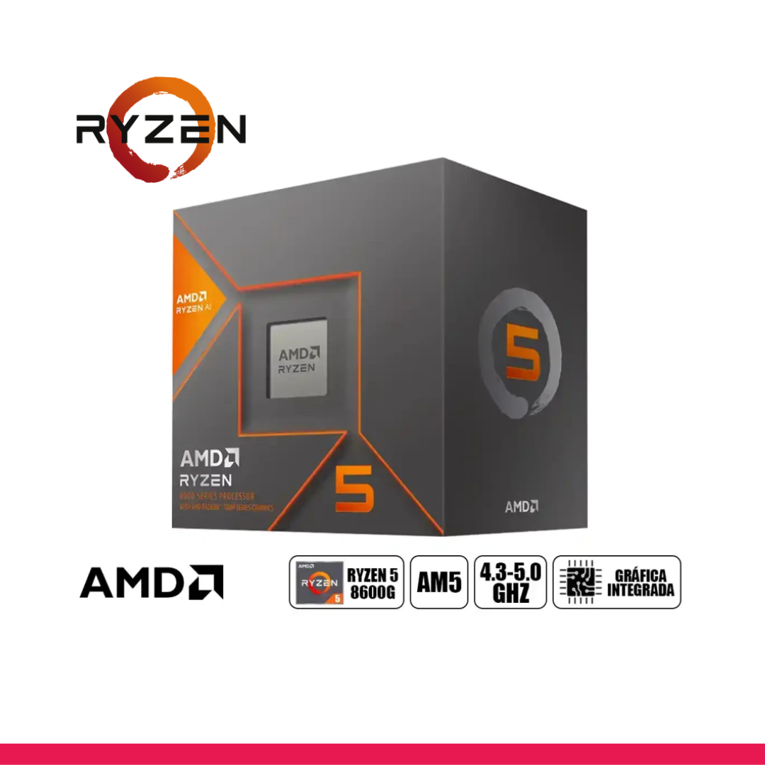 PROCESADOR AMD RYZEN 5 8600G 4.3GHZ HASTA 5GHZ 16MB (100-100001237BOX) AM5, 6 NUCLEOS, RADEON GRAPHICS