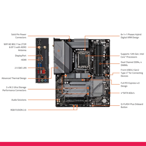 La GIGABYTE B660 GAMING X AX DDR4 (rev. 1.0) es una motherboard sólida, confiable y lista para brindarte una excelente experiencia de juego o trabajo con procesadores Intel de 12.ª y 13.ª generación (LGA 1700). Con un diseño robusto y bien equilibrado, esta placa base combina rendimiento, conectividad moderna y tecnología avanzada sin irse a precios extremos.