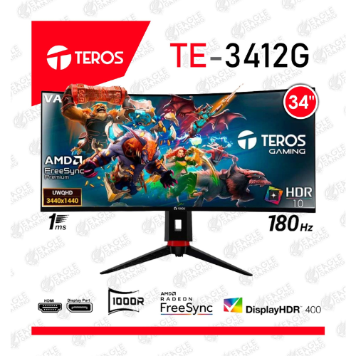 MONITOR CURVO GAMING TEROS TE‑3412G – 34″ WQHD (3440×1440), 180 Hz, 1 ms, HDR10, FreeSync Premium