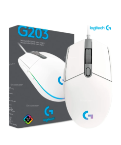 El Mouse Logitech G203 (Blanco) ofrece precisión y estilo con sensor óptico de hasta 8000 DPI, retroiluminación RGB y botones programables. Ideal para gamers y uso diario. 🔥