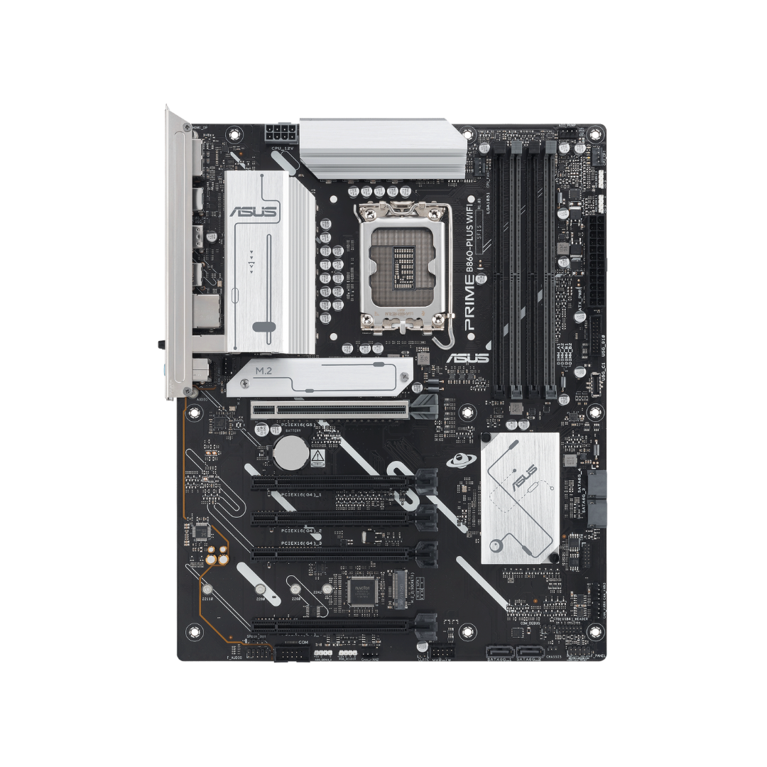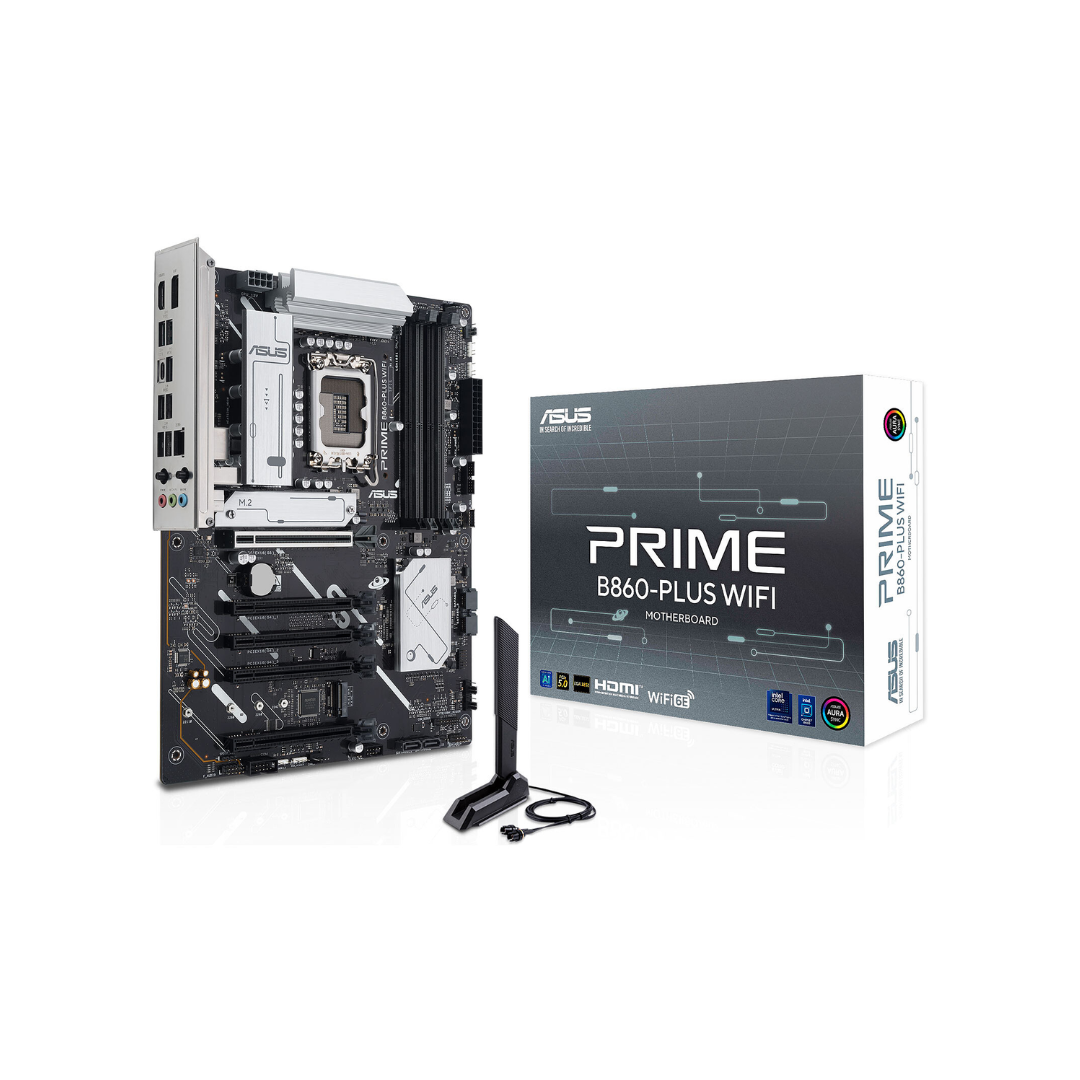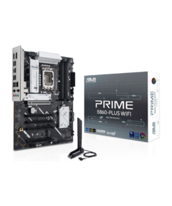 La ASUS PRIME B860-PLUS WIFI es una placa madre de nueva generación diseñada para aprovechar al máximo los procesadores Intel Core Ultra. Con soporte para DDR5, PCIe 5.0 y conectividad avanzada como Wi-Fi 6E, ofrece un rendimiento sólido y preparado para el futuro.