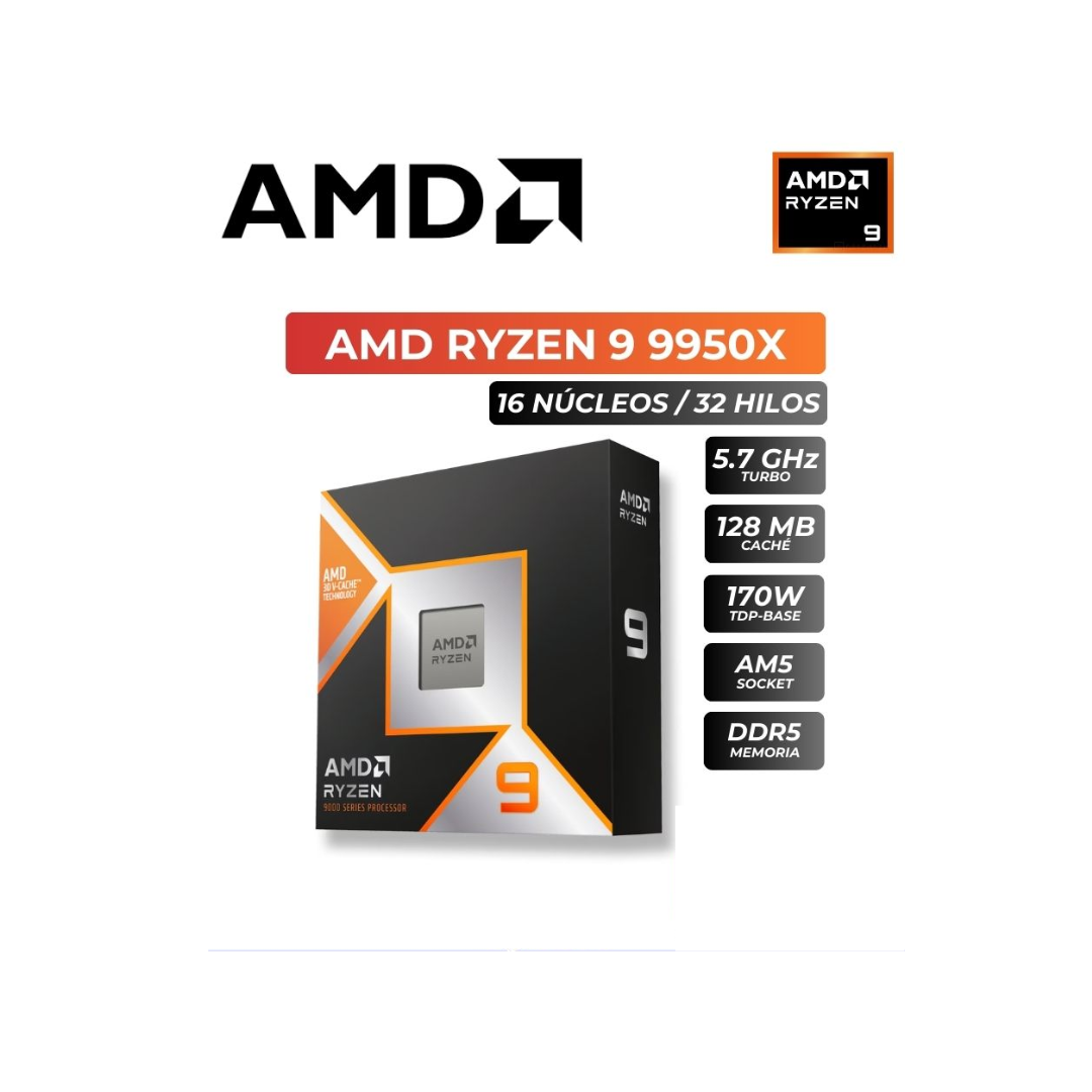 El AMD Ryzen 9 9950X es un procesador de gama entusiasta diseñado para ofrecer el máximo rendimiento en gaming, creación de contenido y tareas profesionales. Con 16 núcleos y 32 hilos basados en arquitectura Zen 5, brinda una potencia sobresaliente para edición de video, renderizado, streaming y multitarea extrema. Gracias a su soporte para DDR5 y PCIe 5.0, está preparado para las tecnologías más modernas, convirtiéndose en una opción ideal para builds de alto nivel que buscan rendimiento sin compromisos. 🔥
